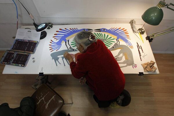 She is the last of the founding artists in the printmaking studio established by James Houston, then a government-appointed administrator, in Cape Dorset in the late 1950s. Houston gave her paper, but she made it her own, in drawings that combine the shadows and memories of the past with the luminosity of her imagination. At the core of the annual Cape Dorset release from the beginnings of the West Baffin Eskimo Co-operative in 1959, she had eight prints in last year's collection, including Bird Fanfare, which had a suggested retail price of $1,200. She never stopped working, never stopped experimenting with new materials and forms, from copper etching in the 1960s to sugar-lift paintings, a process in which paint is squished directly onto an etching plate, in the past decade. She also created an owl design for a stained glass window in a chapel at Appleby College in Ontario in 2004.