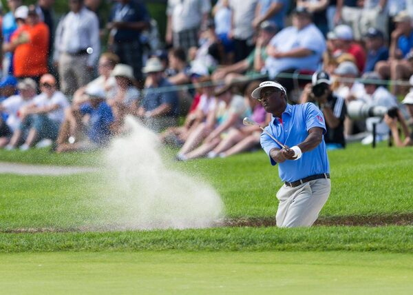 Vijay Singh blasts a shot out of the bunker during the RBC Canadian Open at Glen Abbey Golf Club in Oakville, Ont., in July.Daniel Lea