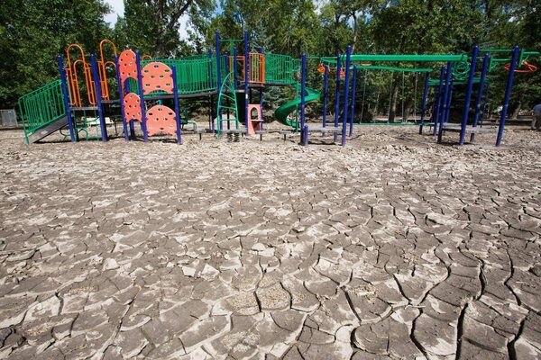 A playground sits in dried mud in downtown High River.Chris Bolin/The Globe and Mail