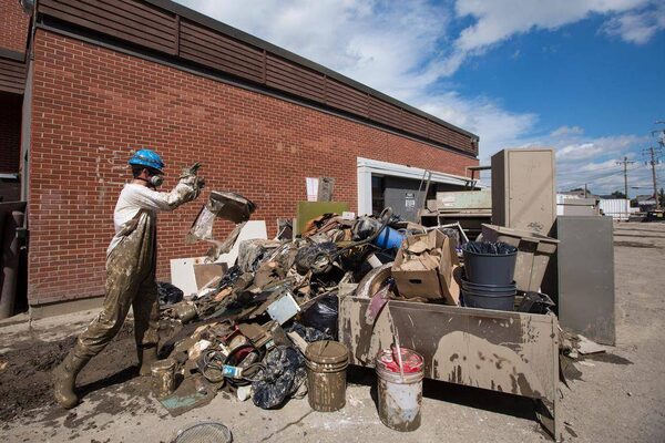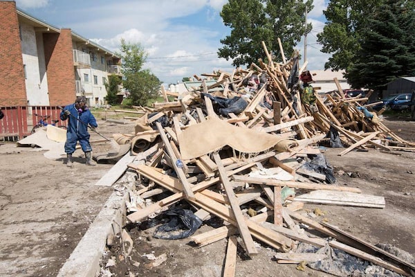 Workers carry out debris from a building some 32 days after the flood.Chris Bolin/The Globe and Mail