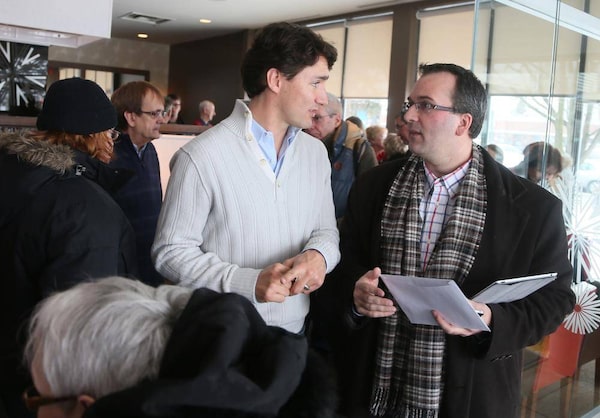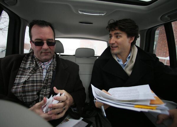 Liberal leadership candidate Justin Trudeau and executive assistant Louis-Alexandre Lanthier during a campaign stop in St-Bruno, Quebec, February 21, 2013.Christinne Muschi/The Globe and Mail