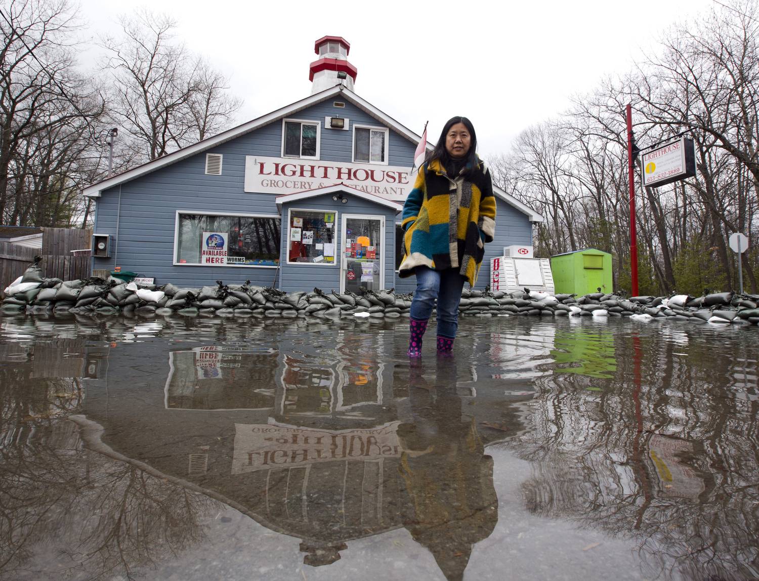 Sandy Yzh co-owner of the Lighthouse general store and restaurant surveys the water damage caused by flooding in the community of Constance Bay about 40kms west of Ottawa.Fred Chartrand/The Canadian Press