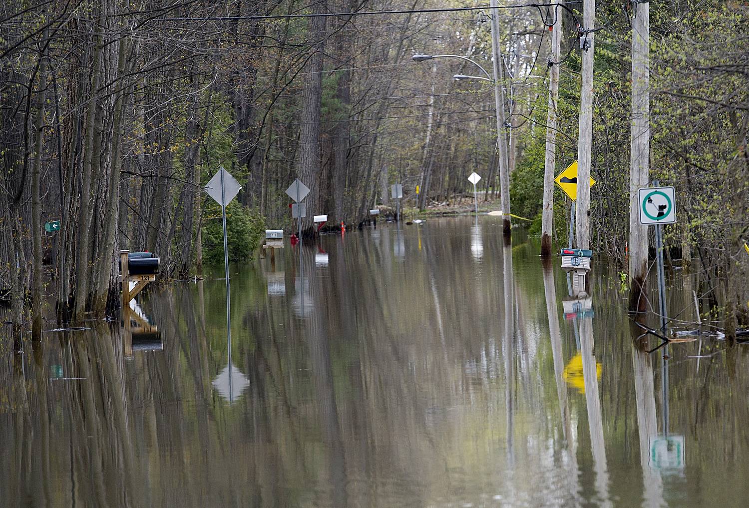 A road covered by floodwaters is shown on L'lle-Cadieux west of Montreal.Graham Hughes/The Canadian Press