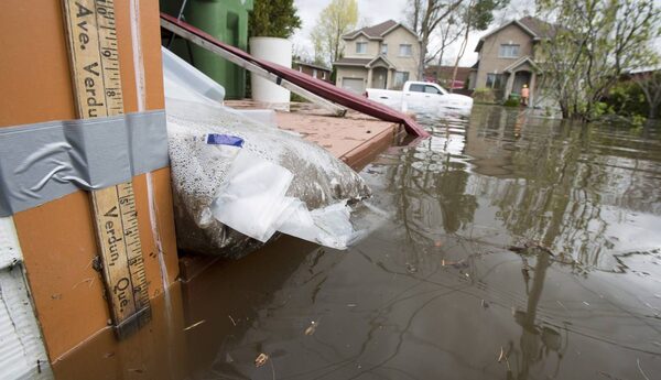 A ruler taped to a house shows that the water has slightly receded overnight in the Cartierville district of Montreal.Paul Chiasson/The Canadian Press