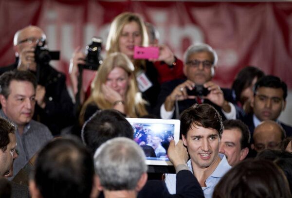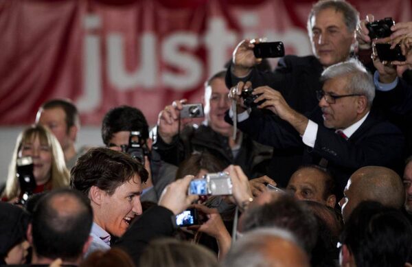 Admirers and cameras surround Justin Trudeau as he worked the room following his speech at a function in Vaughan on Feb. 28, 2013.Peter Power/The Globe and Mail