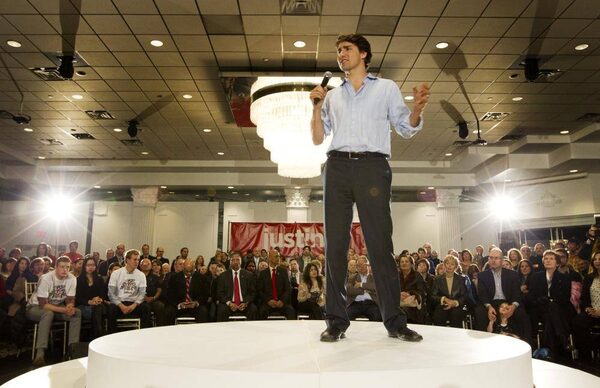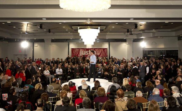 In photos: Justin Trudeau works a big city room on the campaign trail