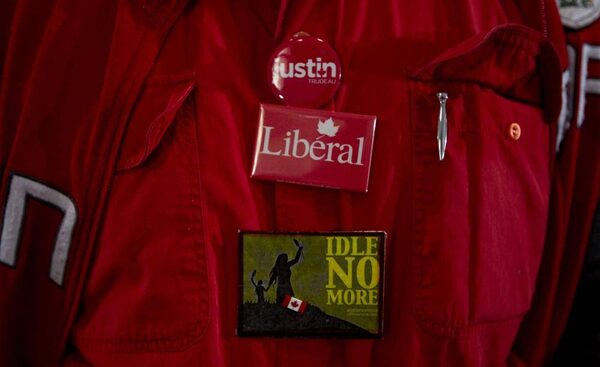 A man wears his buttons proudly while attending Justin Trudeau's visit to Vaughan, Ont., on Feb. 28, 2013.Peter Power/The Globe and Mail