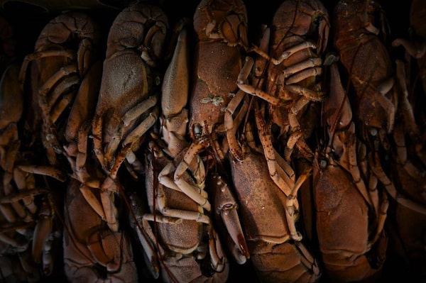 Frozen lobsters wait to be packed for shipping inside Royal Star Foods.Nathan Rochford