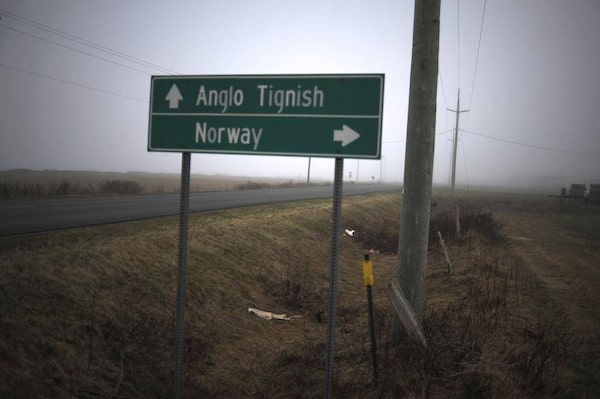 A road sign pointing to Tignish, P.E.I. At its inception the village was divided into Francophone Tignish and Anglo Tignish, titles local residents still use today.Nathan Rochford