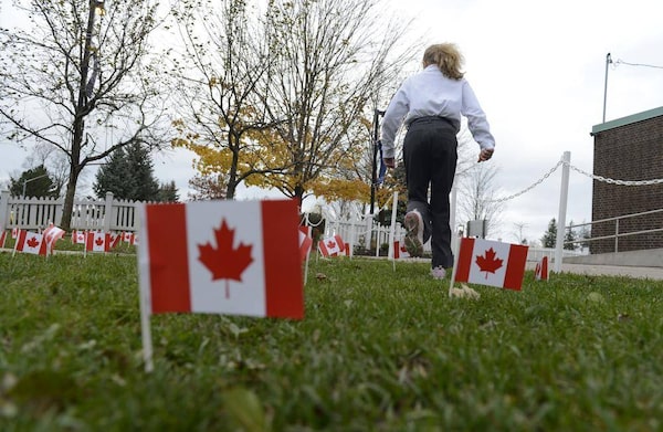Looking for ways to make the practice of remembrance meaningful for students, the flag planting was inspired by the 3rd annual Operation Raise a Flag campaign at the Sunnybrook Veterans Centre with the students planting 300 trees in the Remembrance Garden. The school is the first to adopt the campaign and it is hoped that this simple act of remembrance will provide a special thank you and smiles to those who served our country.Fred Lum/The Globe and Mail