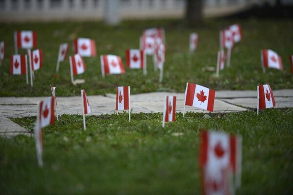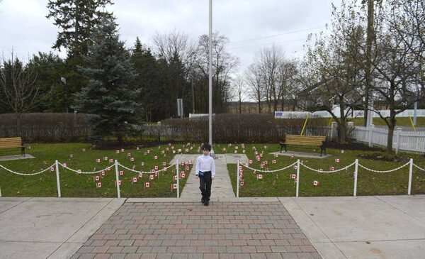 Flags planted by students cover the ground near the flag poll at Country Day School in King City, ON.Fred Lum/The Globe and Mail