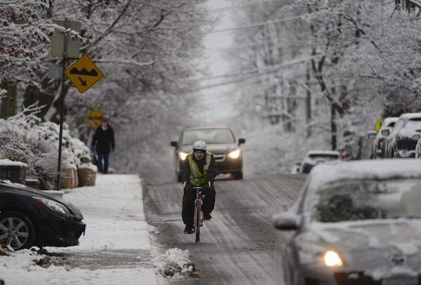 A cyclist is not deterred by the season’s first snowfall in Ottawa.Dave Chan/The Globe and Mail
