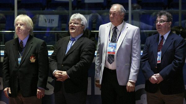 Canadian former hockey players Pat Stapleton, Marcel Dionne, Jocelyn Guevremont and Jean-Paul Parisé, left to right, stand on the ice before an exhibition game in Moscow on Feb. 25, 2012 between teams of Russian and world stars to mark the anniversary of U.S.S.R.-Canada 1972 Summit Series.Grigory Dukor/Reuters/Reuters
