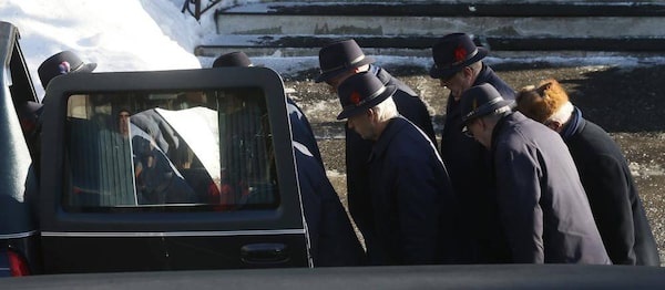 The pallbearers bow after placing Mr. Rizzuto’s casket into the hearse following his funeral.CHRISTINNE MUSCHI/The Globe and Mail