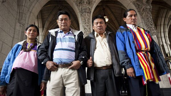 From left, Puwaanch Kintui Antich, Jiyukam Irar Miik, Peas Peas Ayui, and Ampush Ayui Chayat. They are leaders of the Achuar indigenous people from the rain forest in Peru flew. They flew 8,000 kilometres to beseech Talisman Energy Inc., the Calgary-based oil and gas conglomerate, to stop drilling in their territory. But first, they wanted to see a Canadian oil patch for themselves, and meet the aboriginal people who lived there.Caroline Bennett for The Globe and Mail