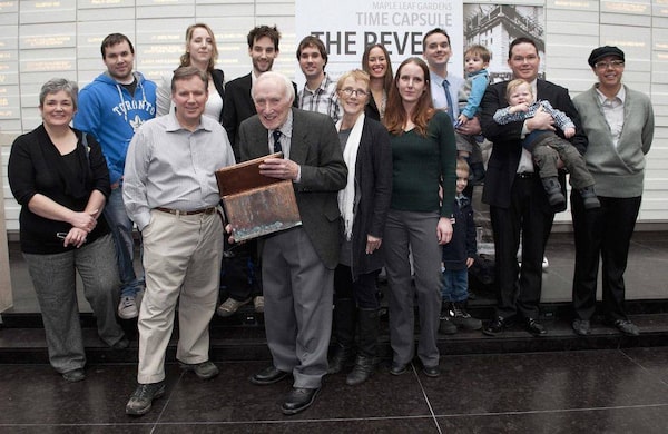 Hugh Smythe, son of Maple Leafs founder Conn Smythe, holds the copper box that held the contents of a time capsule from 1931 discovered during renovations of the Maple Leaf Gardens in January, 2012.Fernando Morales/The Globe and Mail