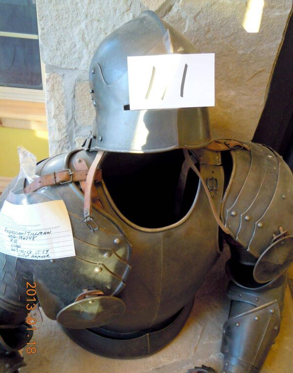 This suit of armour, stolen from Borden House Antiques in Port Williams, N.S., was used in the film The Conclave.