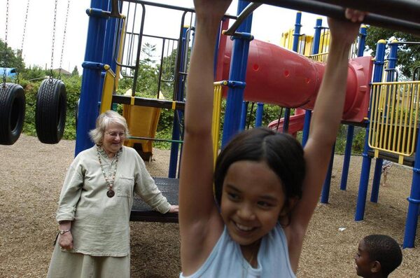 Cheryl Paige school principal of Joyce Public School seen in the playground of the school with children playing. July 22, 2005Louie Palu/The Globe and Mail