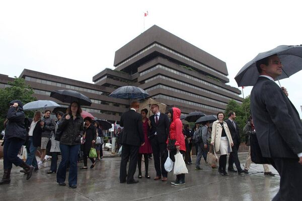 Hundreds of foreign service officers walks out of Department of Foreign Affairs headquarters June 06, 2013 in Ottawa.Dave Chan/The Globe and Mail