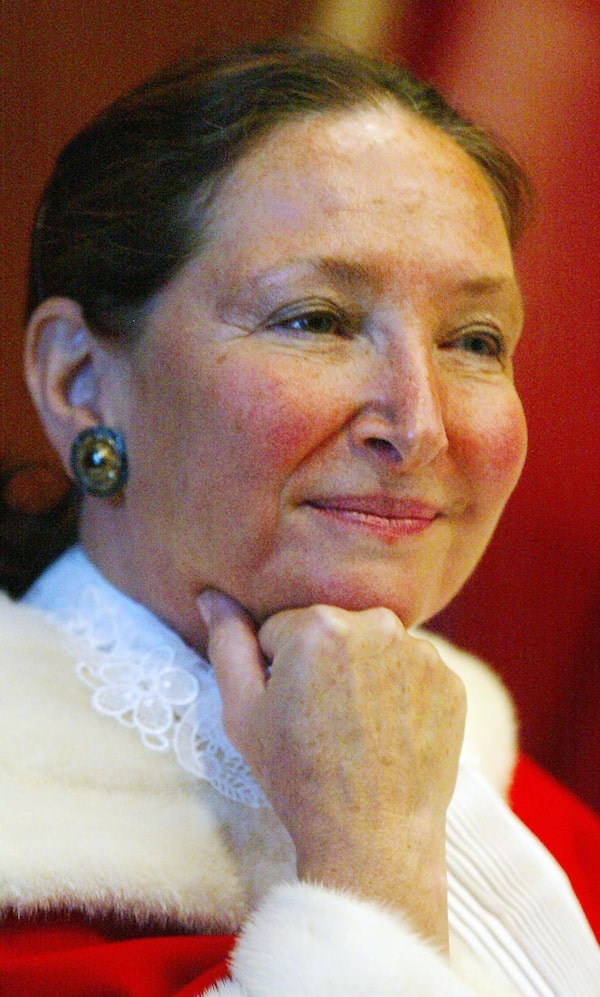 Justice Rosalie Abella looks on during a swearing-in ceremony at the Supreme Court of Canada for her and Justice Louise Charron, in Ottawa, Monday, Oct. 4, 2004. Abella has made an impassioned plea to the graduating class of law students at an American university to stand against injustice fuelled by "narcissistic populism."FRED CHARTRAND/The Canadian Press