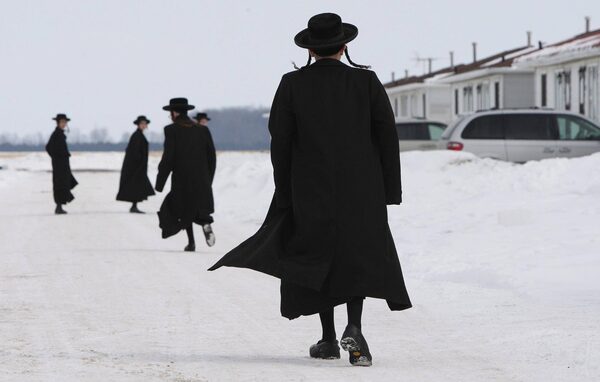 Members of Lev Tahor walk down a street in Chatham, Ont. In March of 2014, Chatham-Kent Children’s Services moved in to seize 14 children, but social workers found that the families had fled, violating a court order.Dave Chidley/The Canadian Press