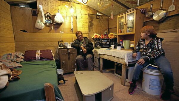 In a one-room, tented shack where Lisa Kiokee-Linklater is watching television with her two toddlers, two mattresses lie on the floor. Each is a bed for three. Mould is creeping across one mattress even though Ms. Kiokee-Linklater just bought it last summer. It cost her $1,000.