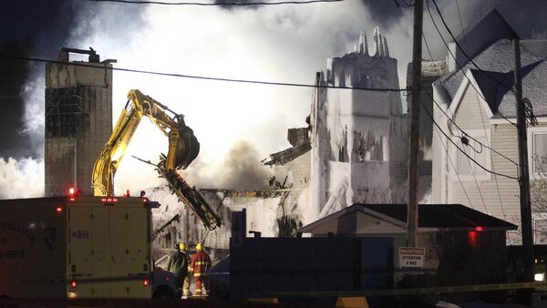 Firefighters work at the scene of a senior's residence fire in L'Isle-Verte, Que., on Jan. 23, 2014.CHRISTINNE MUSCHI/The Globe and Mail