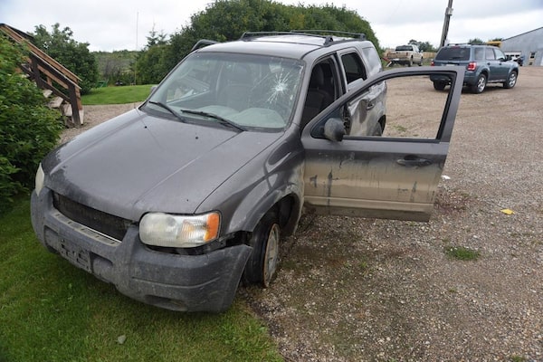 The SUV involved in the Colten Boushie shooting is shown in a Saskatchewan Justice handout photo released at the Gerald Stanley murder trial.Supplied/The Canadian Press