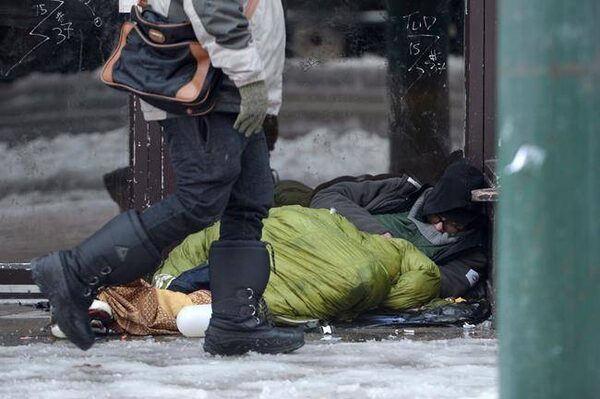 A homeless man sleeps in a doorway in Vancouver's Downtown Eastside, Monday, Dec.19, 2016. Medicine Hat, Alberta has joined the fight against poverty with new proposal.The Canadian Press