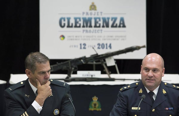 Mario Desmarais, left, with the Montreal Police Department and Michel Arcand with the RCMP speak to reporters during a news conference at RCMP headquarters in Montreal on June 12, 2014, where they spoke about Project Clemenza, a major sweep of two alleged organized crime groups operating in the province.GRAHAM HUGHES/The Canadian Press