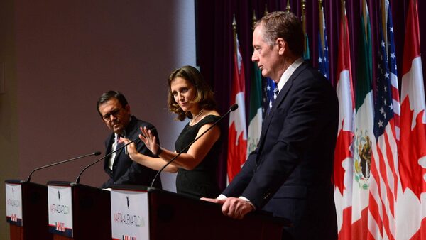 Mexico's Secretary of Economy Ildefonso Guajardo Villarreal, (left to right) Canada's Foreign Affairs Minister Chrystia Freeland and United States Trade Representative Robert Lighthizer attend a news conference on the NAFTA negotiations in Ottawa on Wednesday, Sept. 27, 2017.Sean Kilpatrick/The Canadian Press