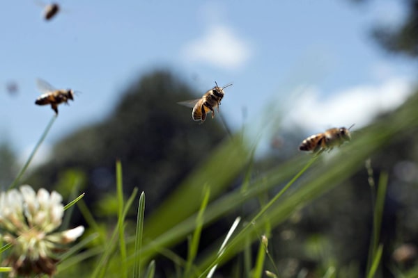 Carniolan honey bees fly near Hennepin, Ill., on July 3, 2014.Daniel Acker/Bloomberg