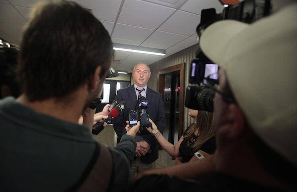 Giles Crouch speaks to the media in Halifax on Tuesday, Aug. 25, 2015 after a judge upheld an order under Nova Scotia's Cyberbullying Act against his former business partner Robert Snell.Darren Pittman/The Canadian Press