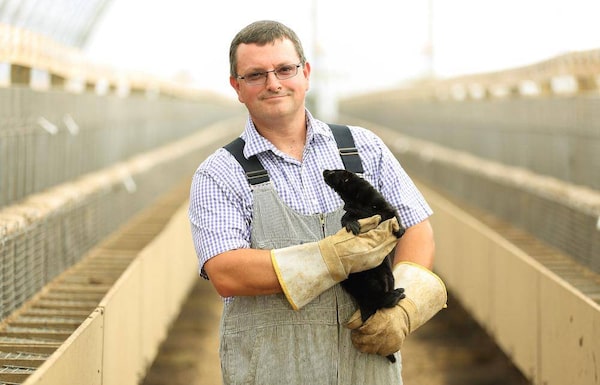 Dan Mullen, president of the Nova Scotia Mink Breeders Association, holds a mink at his farm in Waterville, Nova Scotia. He breeds 3,500 female mink every year and sells 18,000 pelts, and supports changes to industry regulations.PAUL DARROW