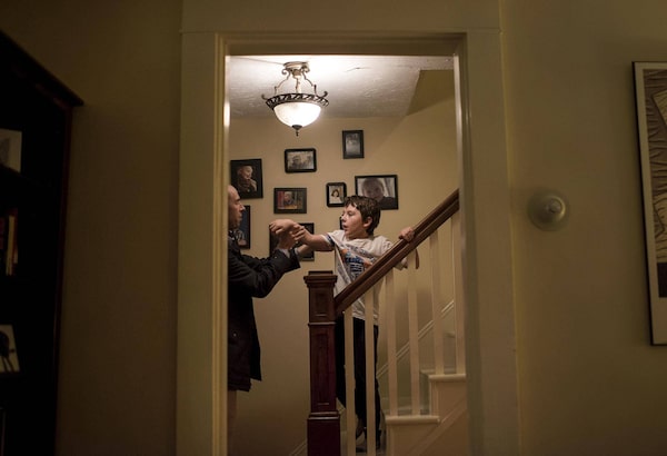 John Sutherland, left, tries to restrain his son Callum, 9, who has violently aggressive fits of frustration because of his severe autism, in their home in Bedford, N.S., on FridayDarren Calabrese/The Globe and Mail