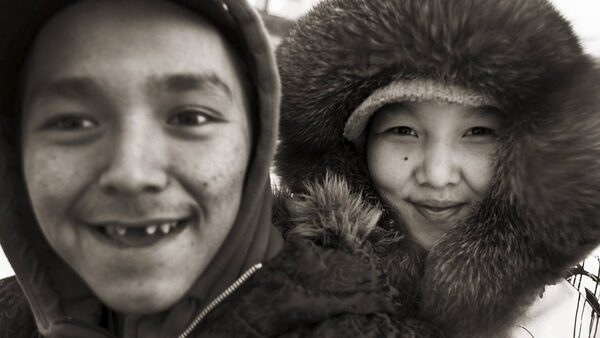 School children try to get close to hunters returning from a seal hunt to the small hamlet of Cape Dorset, Nunavut, Canada on November 10, 2010.Peter Power/The Globe and Mail