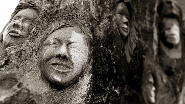 Carvings of faces on a boulder outside of the legislative assembly in Iqaluit, Nunavut on Nov. 4, 2010.Peter Power/The Globe and Mail