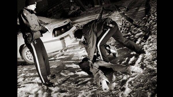 RCMP officers arrest a shoeless man in the snow in Iqaluit, Nunavut on Nov. 6, 2010 following a call about an intoxicated man with a knife.Peter Power/The Globe and Mail