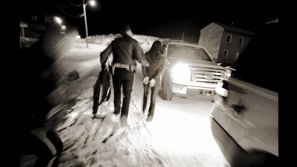 An intoxicated woman is removed from a home after a disturbance on November 6, 2010, in Iqaluit, Nunavut, Canada. The RCMP detachment in Iqaluit is kept busy every night with domestic calls primarily caused by the abuse of drugs and alcohol.Peter Power/The Globe and Mail