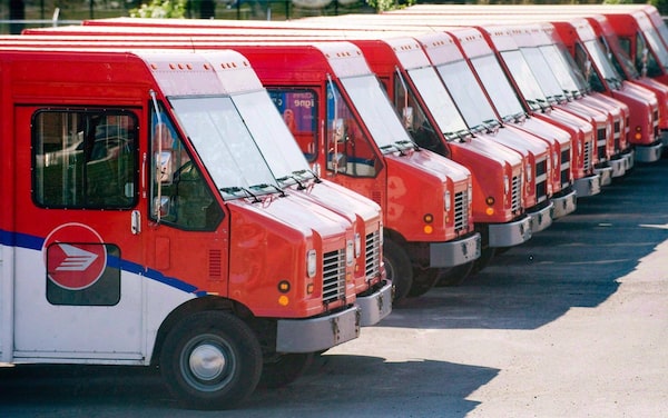 Canada Post vehicles sit outside a sorting depot in the Ville St-Laurent borough of Montreal on June 6, 2011.Graham Hughes/The Canadian Press