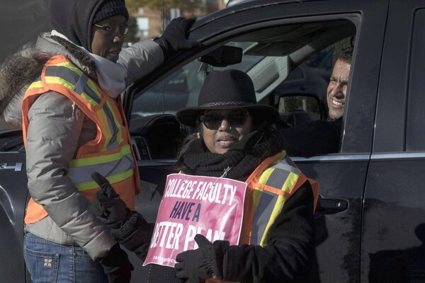 Faculty members delay cars passing through a through a picket line at a Humber College campus in Toronto on Nov. 8, 2017.Chris Young/The Canadian Press