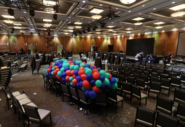 The event had just taken a break in its program before the ballots were to be read out and the new leader announced. However, in a room at the Hilton hotel, lawyers were gathering.