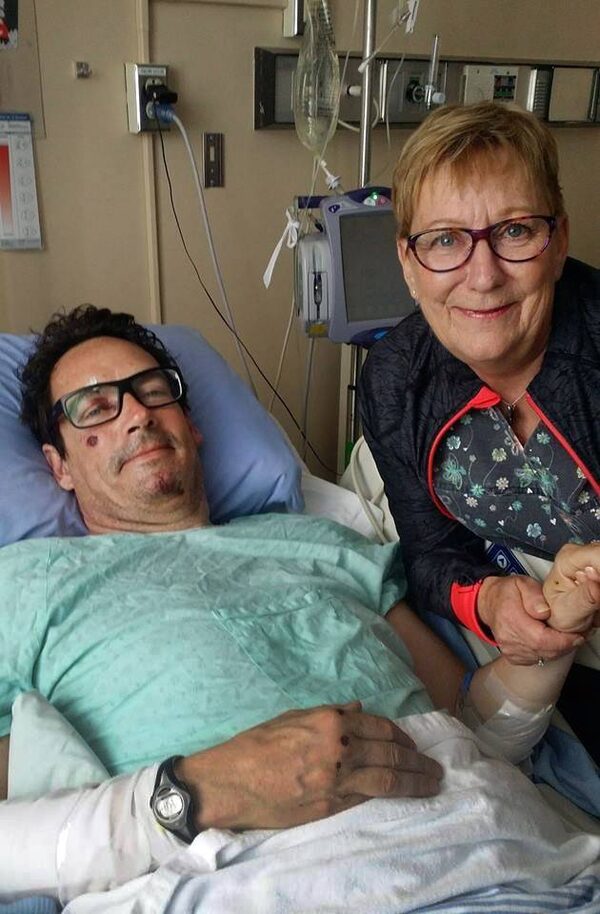 Pierre Karl Péladeau posted this photo on his public Facebook page following his bike accident. He is being tended to by Micheline Ouellet, the assistant chief nurse of the Centre Hospitalier Université de Sherbrooke.