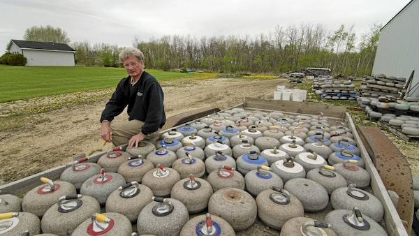 Al Thompson with a trailer full of old curling rocks at his facility a few kilometers east of Winnipeg Thursday May 19, 2011. Thompson finds old curling rocks from rural prairie towns and resells them, mainly to the US where the sport is taking off.David Lipnowski for The Globe and Mail