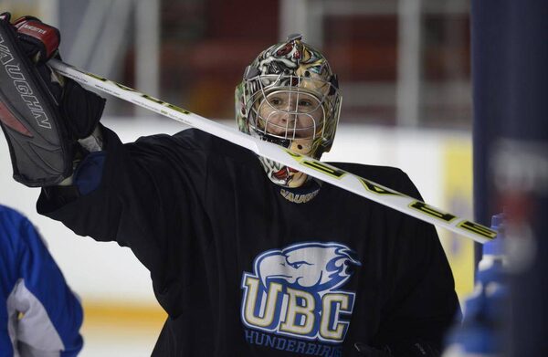 Danielle Dube is a goalie for the University of British Columbia women’s hockey team, photographed here during the team's practice at Varsity Area on March 6 2013.Fred Lum/The Globe and Mail