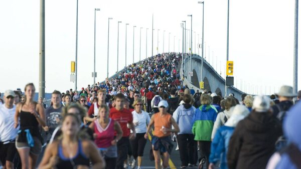 There was a brisk breeze and bright sunshine Sunday as 10,000 walkers and runners crossed the Confederation Bridge, doing their part to raise money for the annual Terry Fox Run - 30 years after Fox's cross-country trek was tragically cut short.