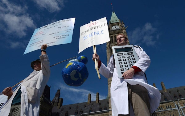 Scientists calling on the federal government to stop cutting scientific research rally on Parliament Hill in Ottawa on Sept. 16, 2013. Evidence for Democracy, an advocacy group formed by a biologist, aims to put the issue back on the political agenda ahead of the election on Oct. 19.Sean Kilpatrick/The Canadian Press