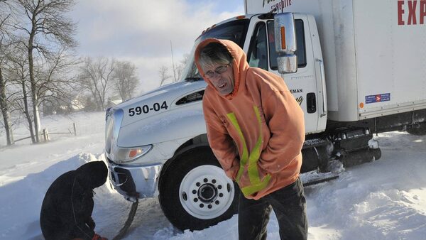 Tow truck operator Dean Scott works to free a transport truck from a snowbank on London Line, just east of Sarnia, Ont., Tuesday, Dec. 14, 2010. He has been working almost non stop since the storm began, Sunday afternoon. A state of emergency has been declared for Lambton County as snow stranded hundreds of motoristsGlenn Ogilvie