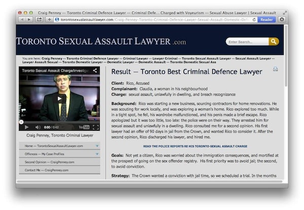 She also cites the "irreverent descriptions" of sexual assault cases on some websites, including one posted by Toronto criminal lawyer Craig Penney, who colourfully recounts the travails of a client named "Rico," who was "scouting for work" and "exploring a woman's home" but who "explored too much."