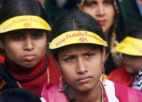 School girls listen to a speaker during a rally in New Delhi. The practice of sex selection is not widespread across India, said Kripa Sekhar, of the South Asian Women’s Centre in Toronto.PRAKASH SINGH/AFP / Getty Images